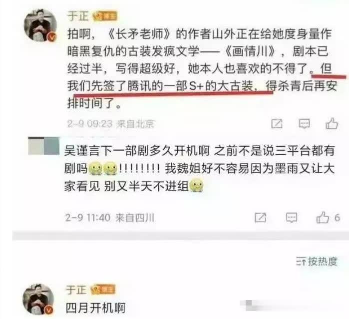 而在官宣婚讯当天,于正的一句“双喜临门”更是引发了怀孕猜测。