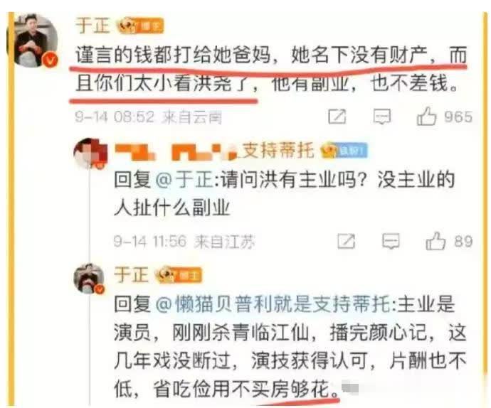 况且于正还曾爆料洪尧除演戏外还有副业,经济状况不错。